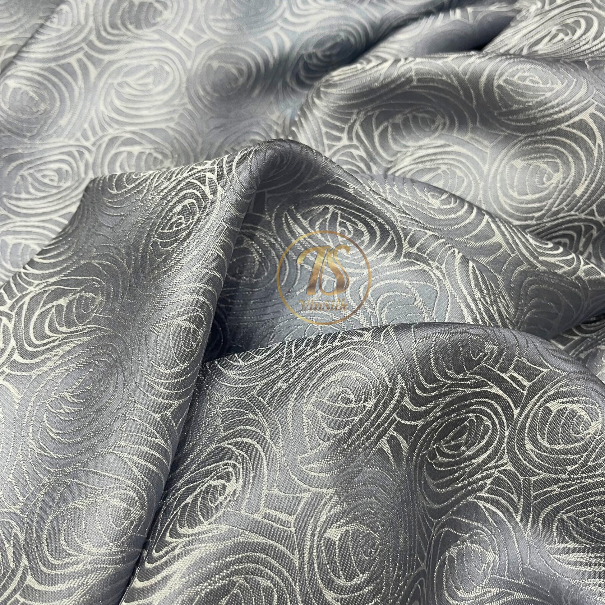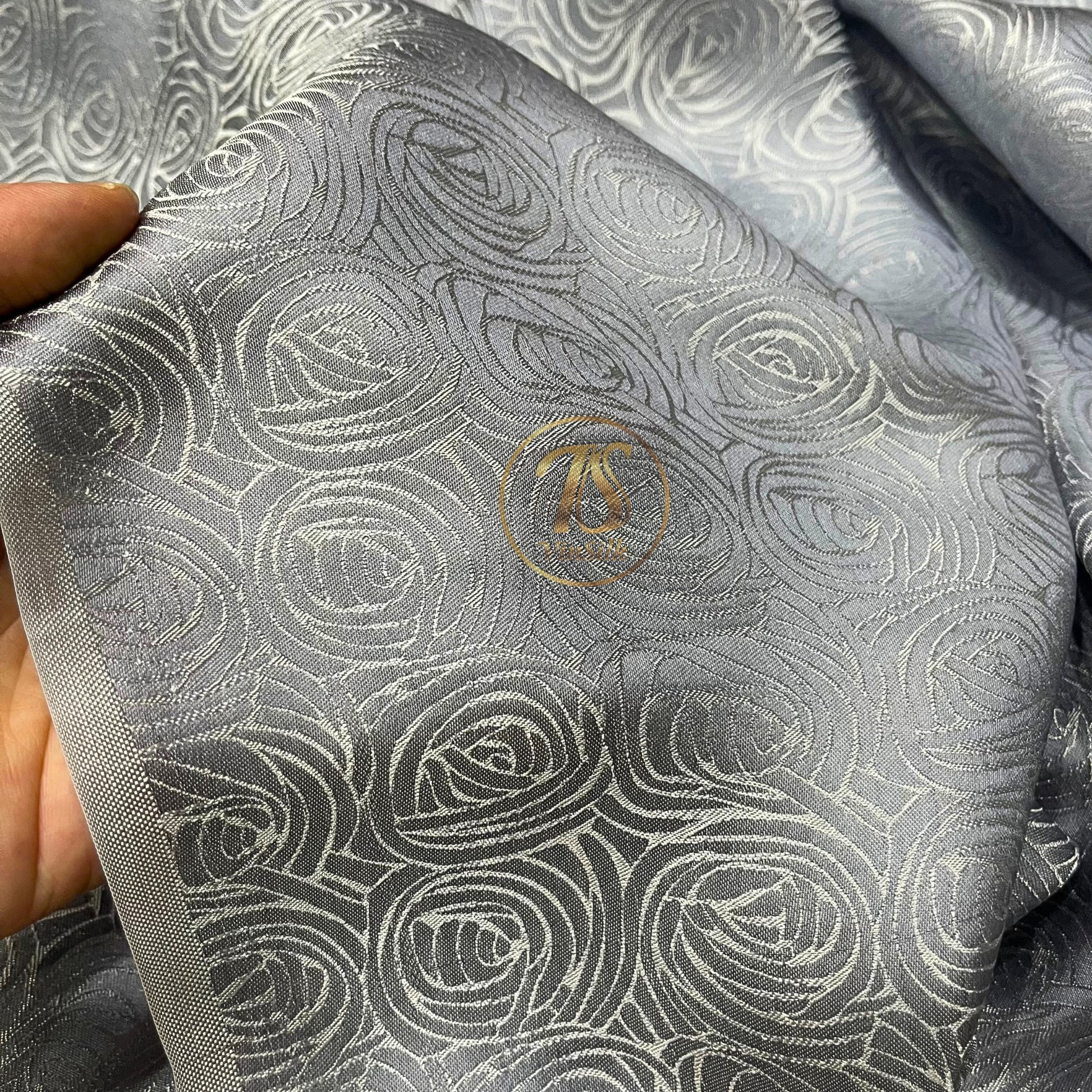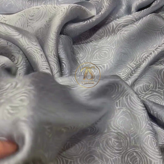 Gray silk fabric with mulberry cabbage pattern, Pure mulberry silk, Handmade fabric, Organic fiber