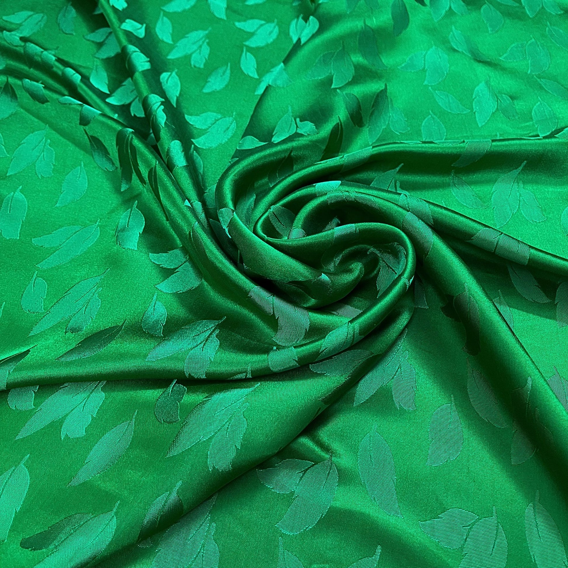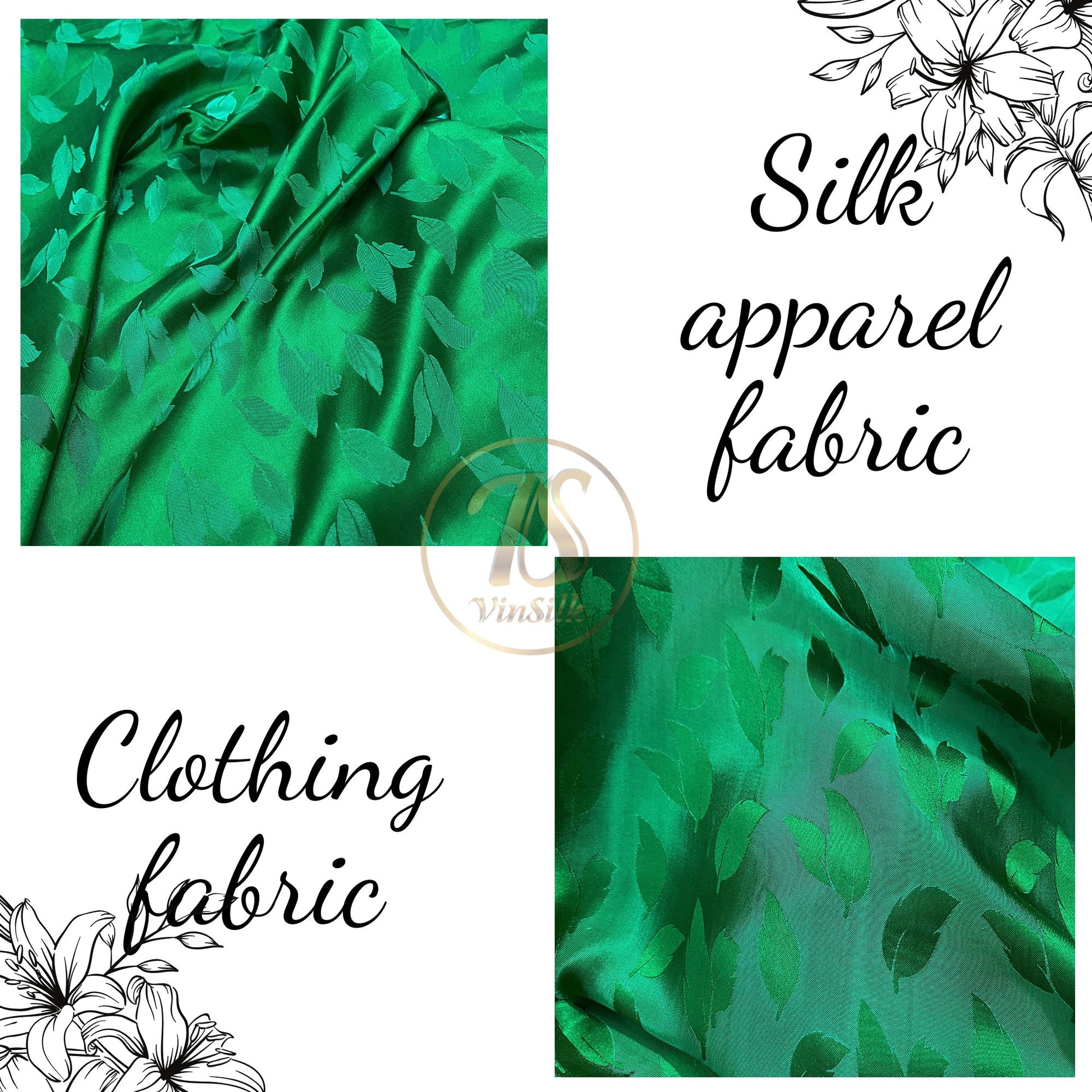 green silk fabric with mulberry leaves pattern, Pure mulberry silk, Handmade fabric, Organic fiber, Vintage textile