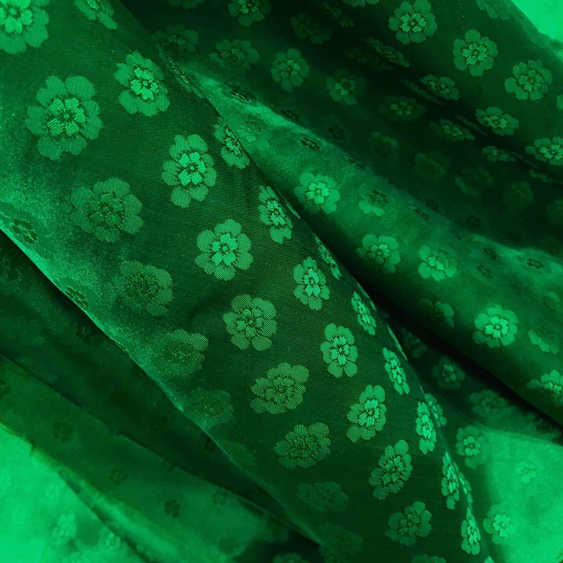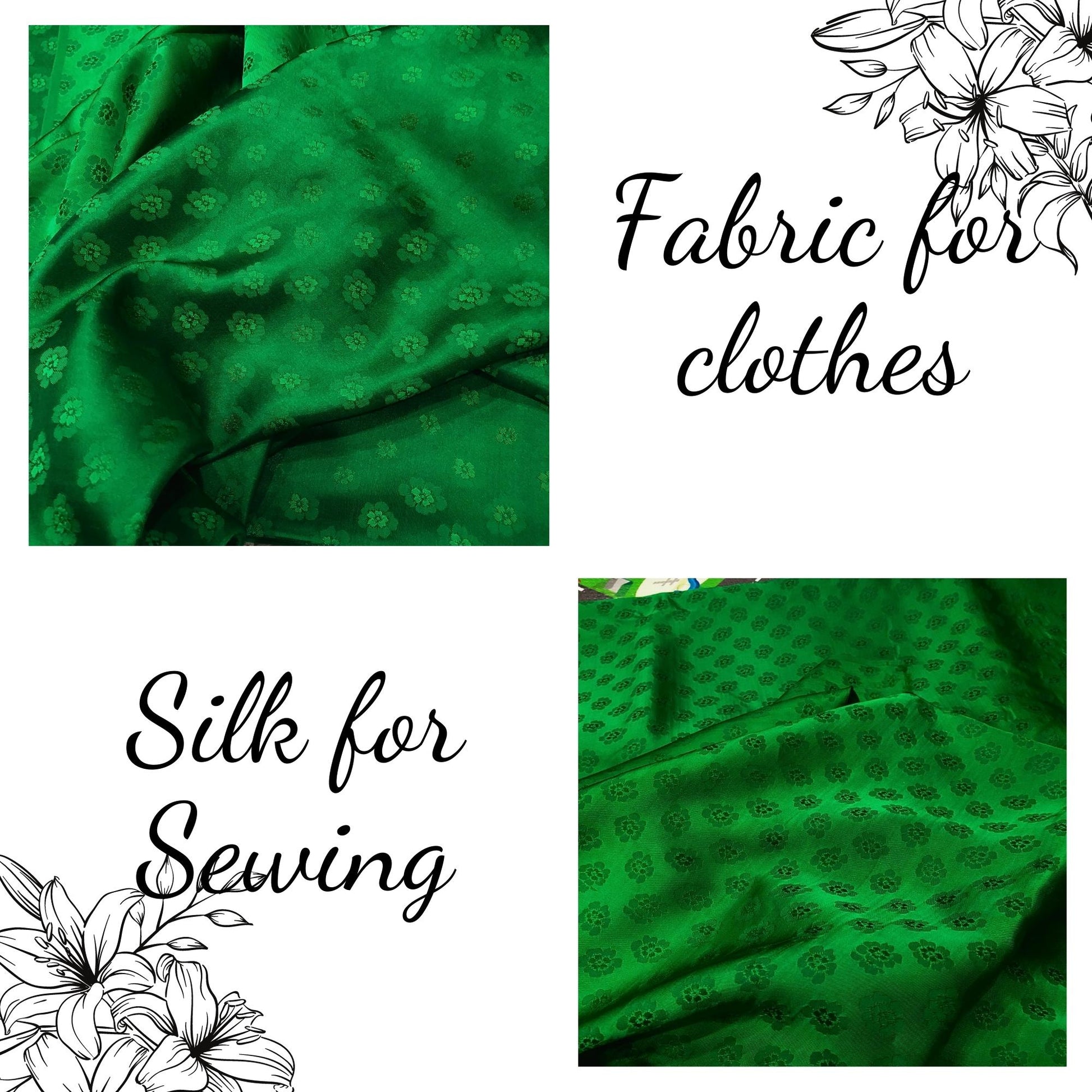 Green silk with peach pattern fabric, Pure mulberry silk, Handmade fabric, Organic fiber, Vintage textile