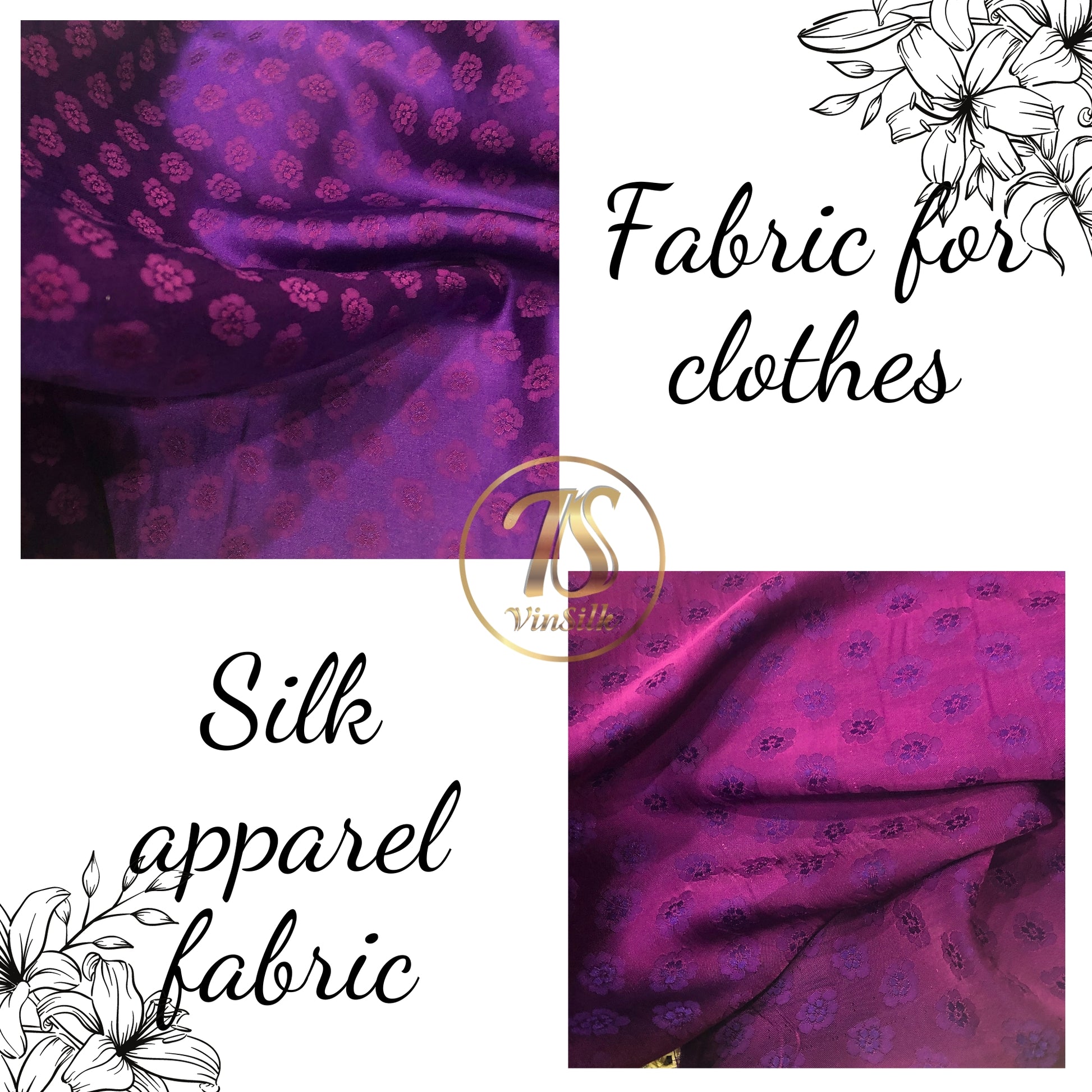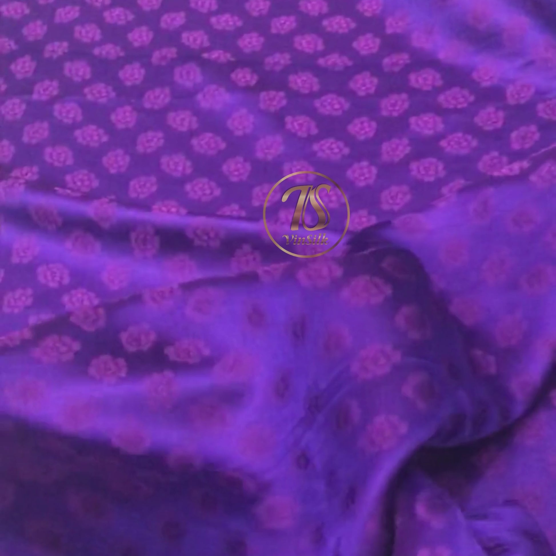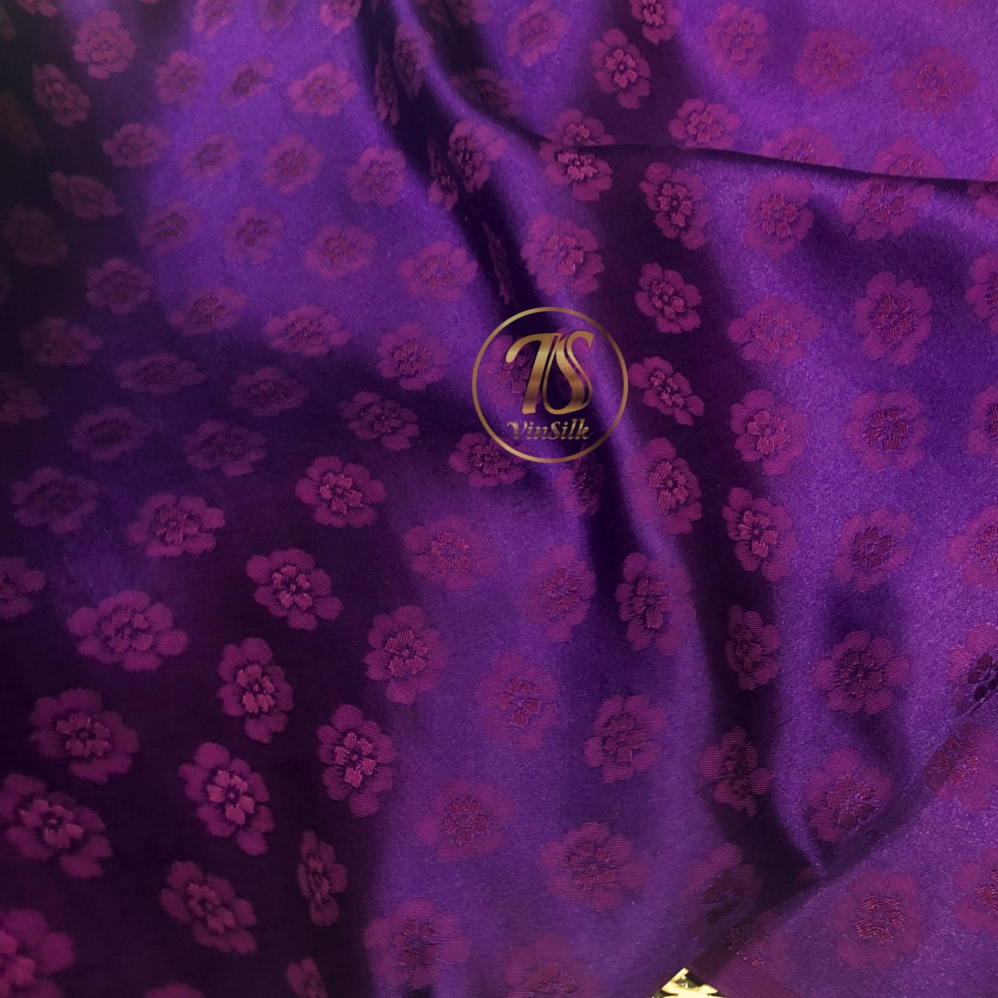 HUE Purple silk with peach pattern fabric, Pure mulberry silk, Handmade fabric, Organic fiber, Vintage textile