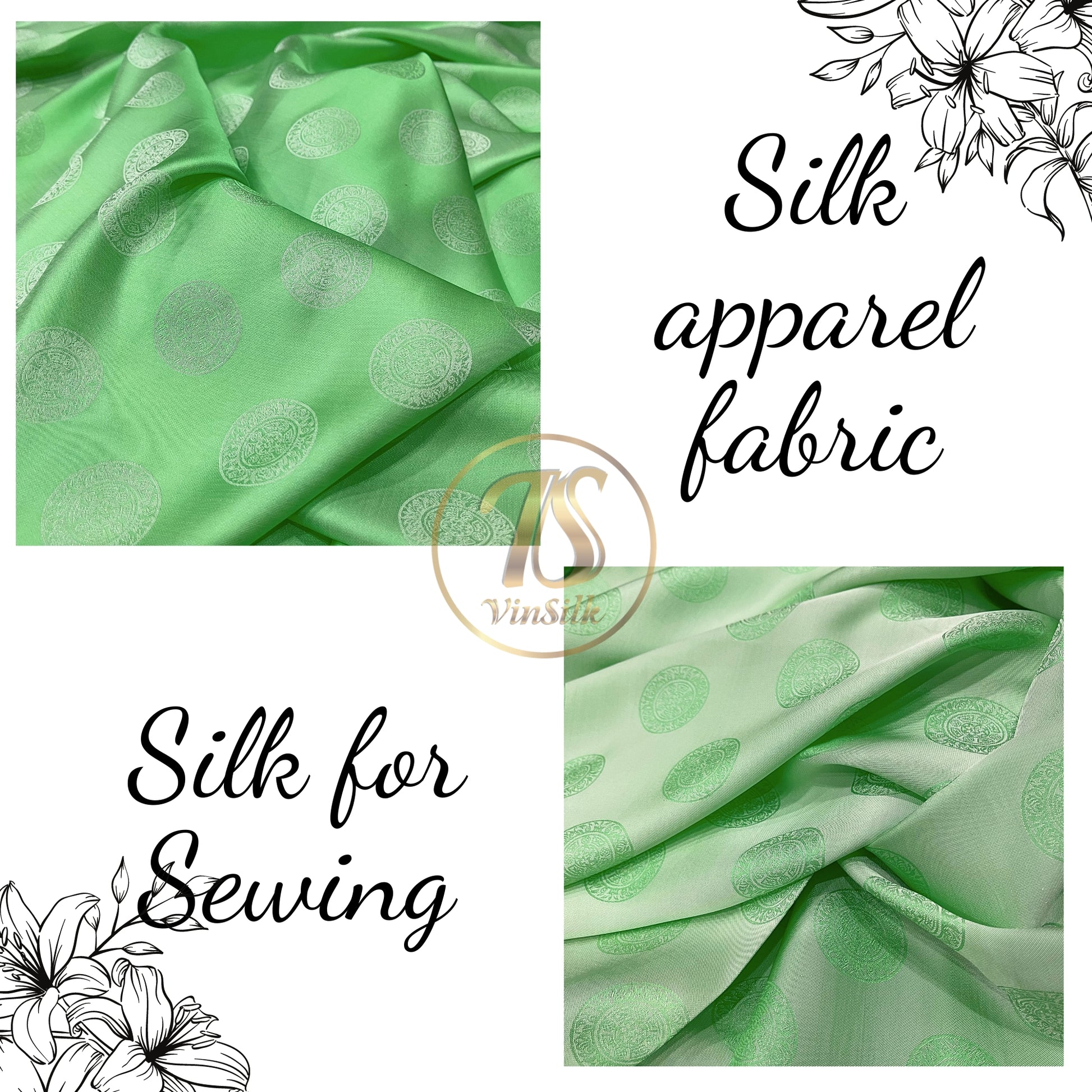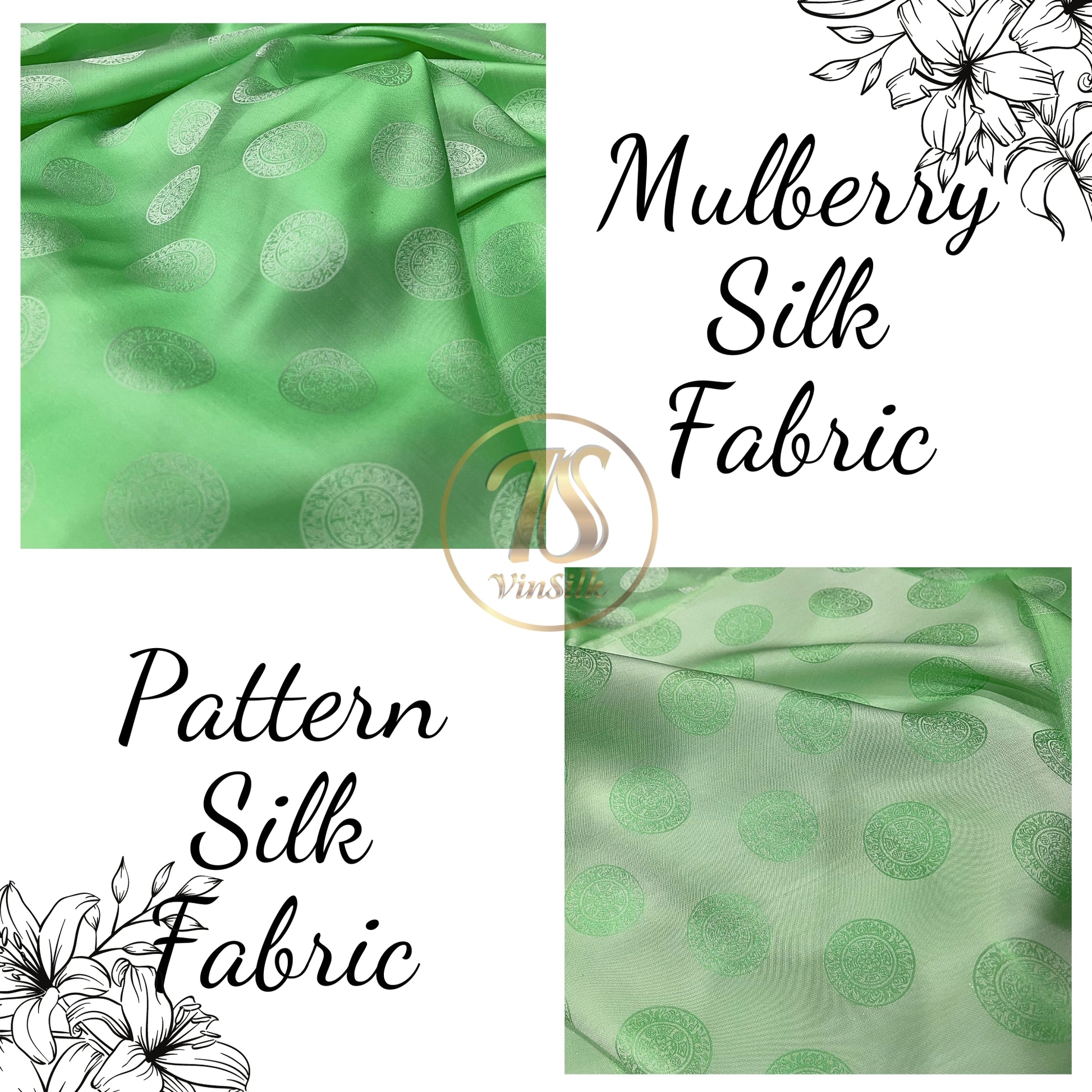 Light green silk fabric with mulberry Emerald pattern, Pure mulberry silk, Handmade fabric, Organic fiber, Vintage textile