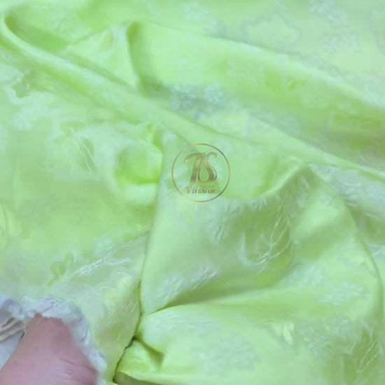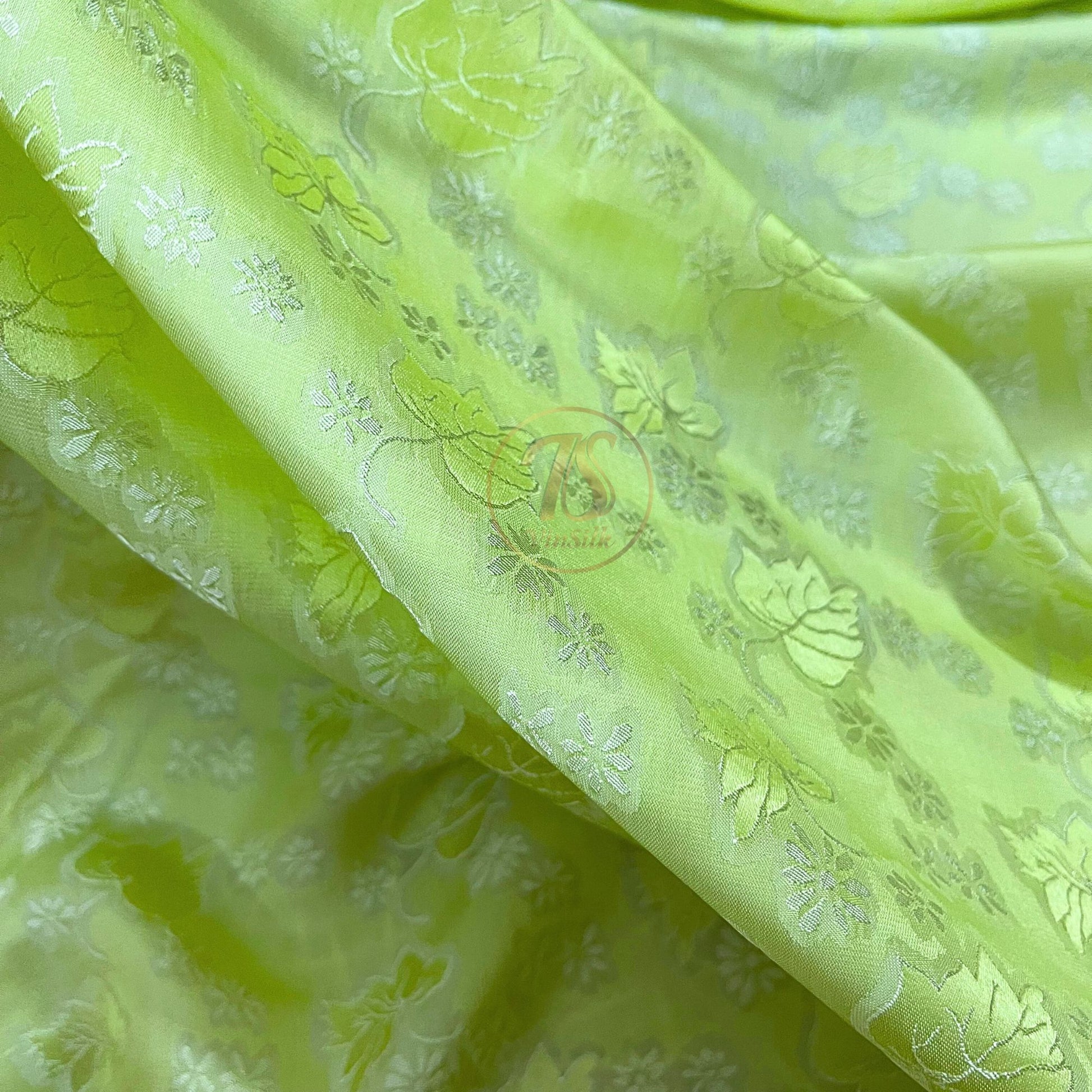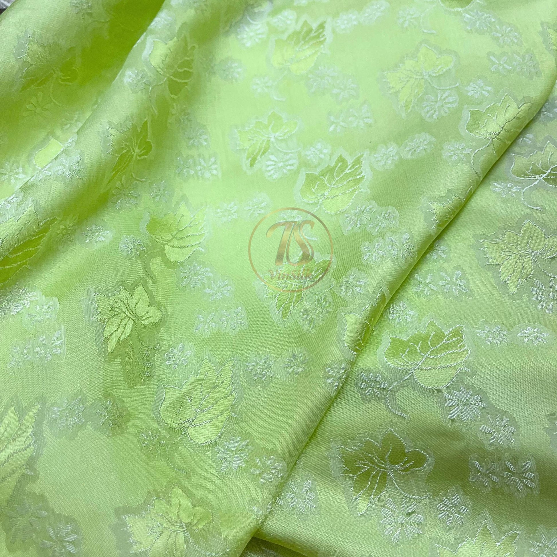 Light green silk fabric with mulberry leaf pattern, Pure mulberry silk, Handmade fabric, Organic fiber, Vintage textile