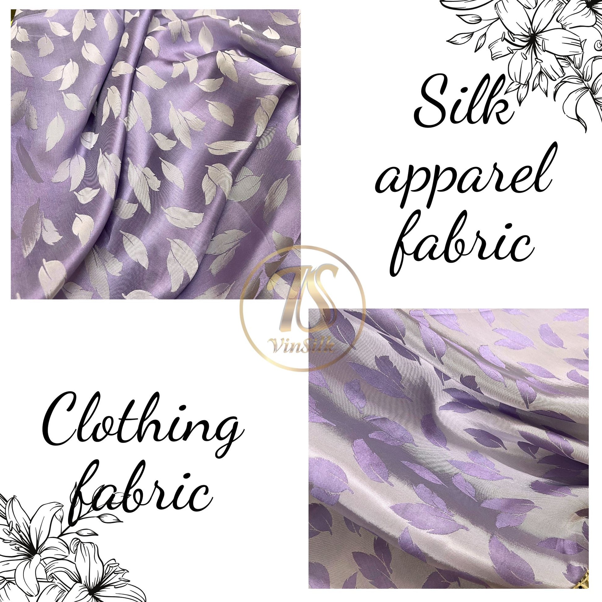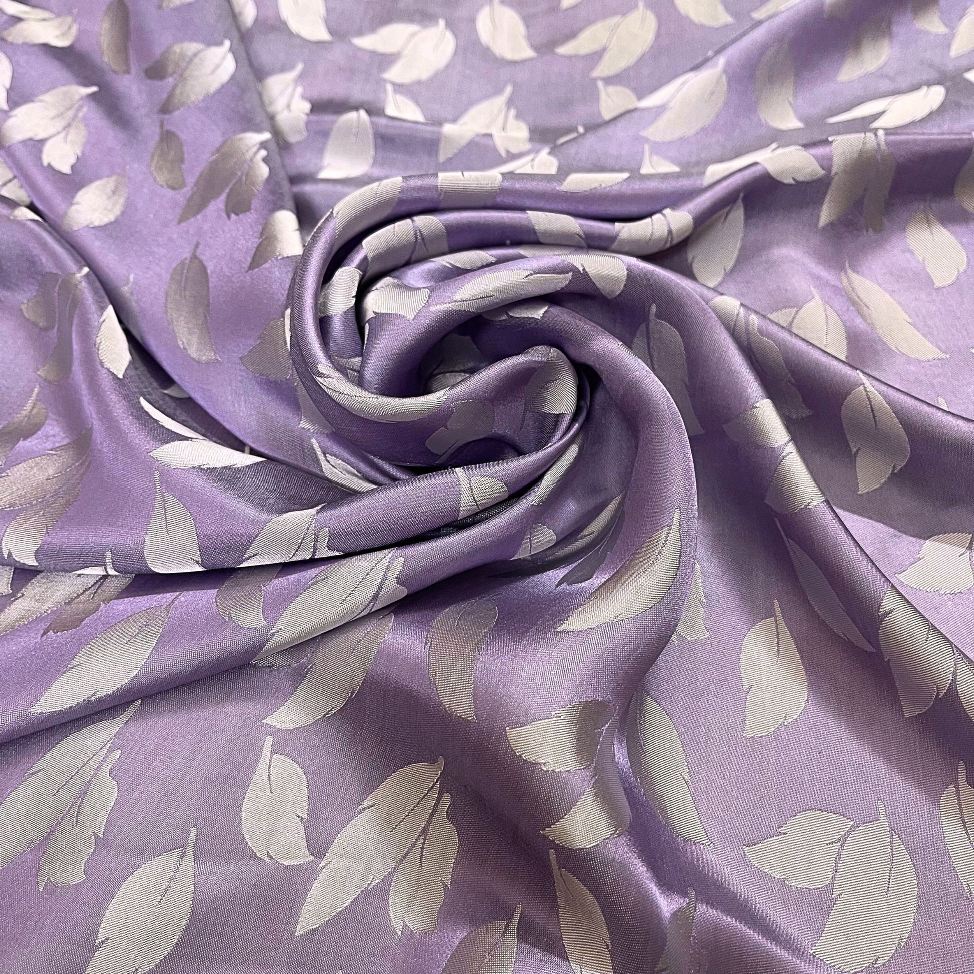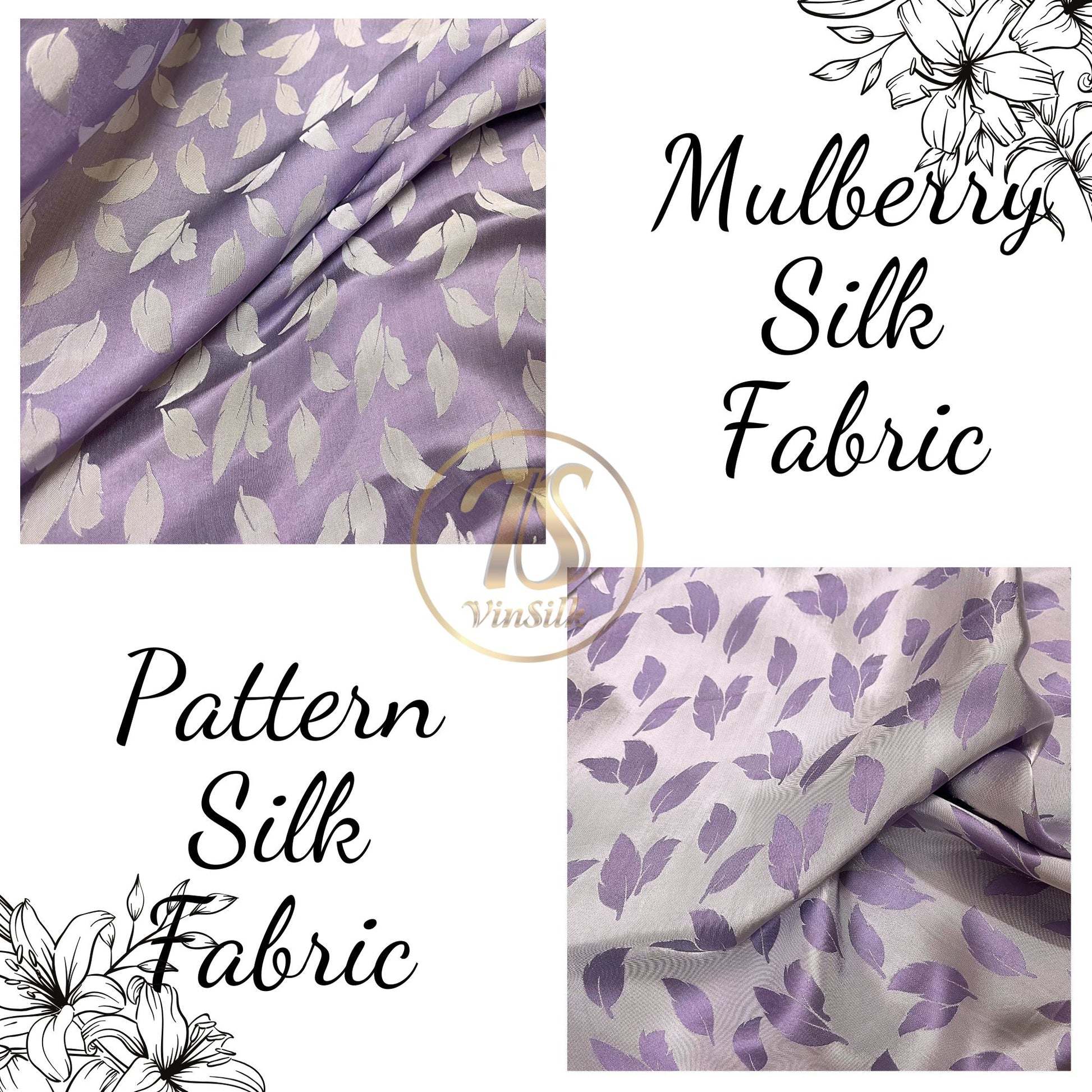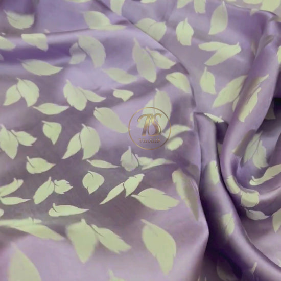Light purple silk fabric with mulberry white leaves pattern, Pure mulberry silk, Handmade fabric, Organic fiber, Vintage textile