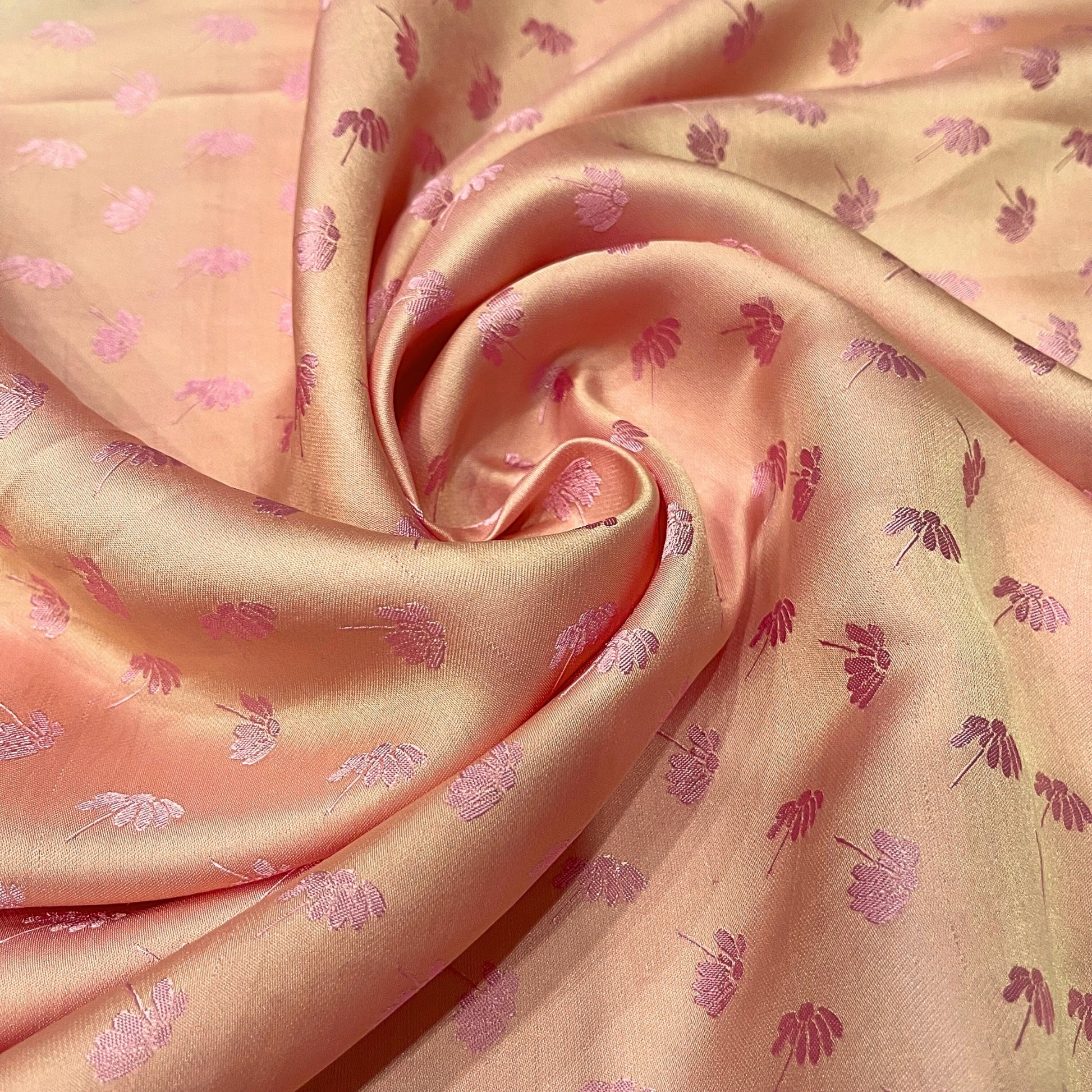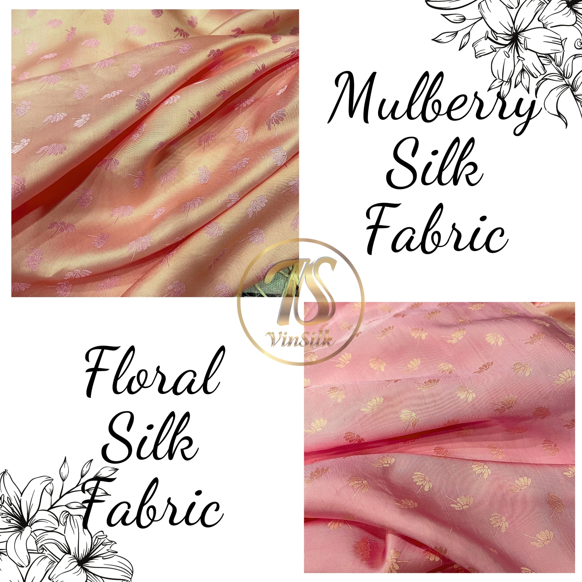 Orange Pink fabric with mulberry dandelion pattern, Pure mulberry silk, Handmade fabric, Organic fiber