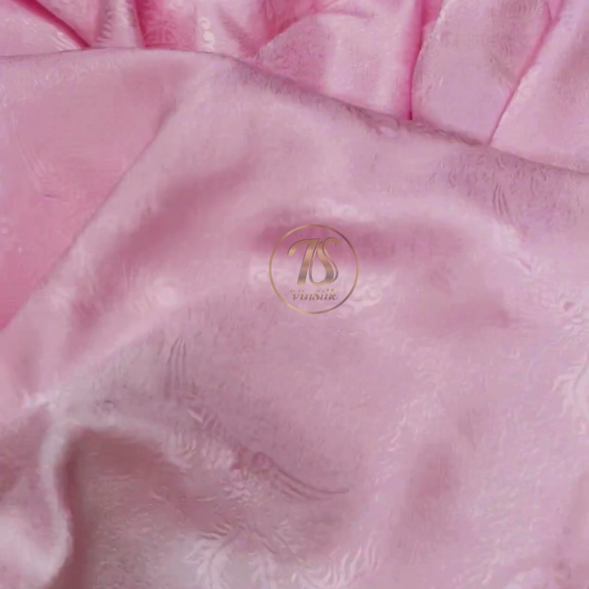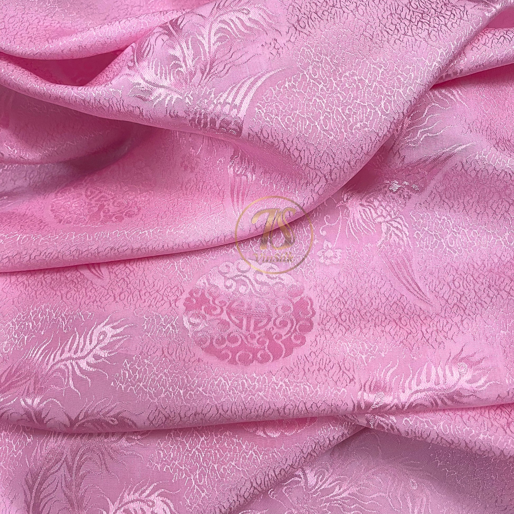 Pink silk fabric with mulberry phoenix pattern, Pure mulberry silk, Handmade fabric, Organic fiber, Vintage textile