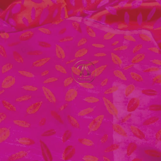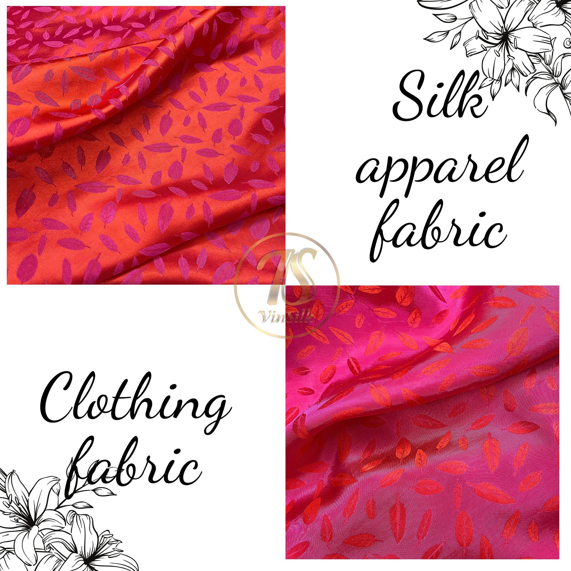 Pink silk with leaf pattern fabric, handmade fabric, Organic fiber, Vintage textile, Wedding dress, Gift for women, personalized gift