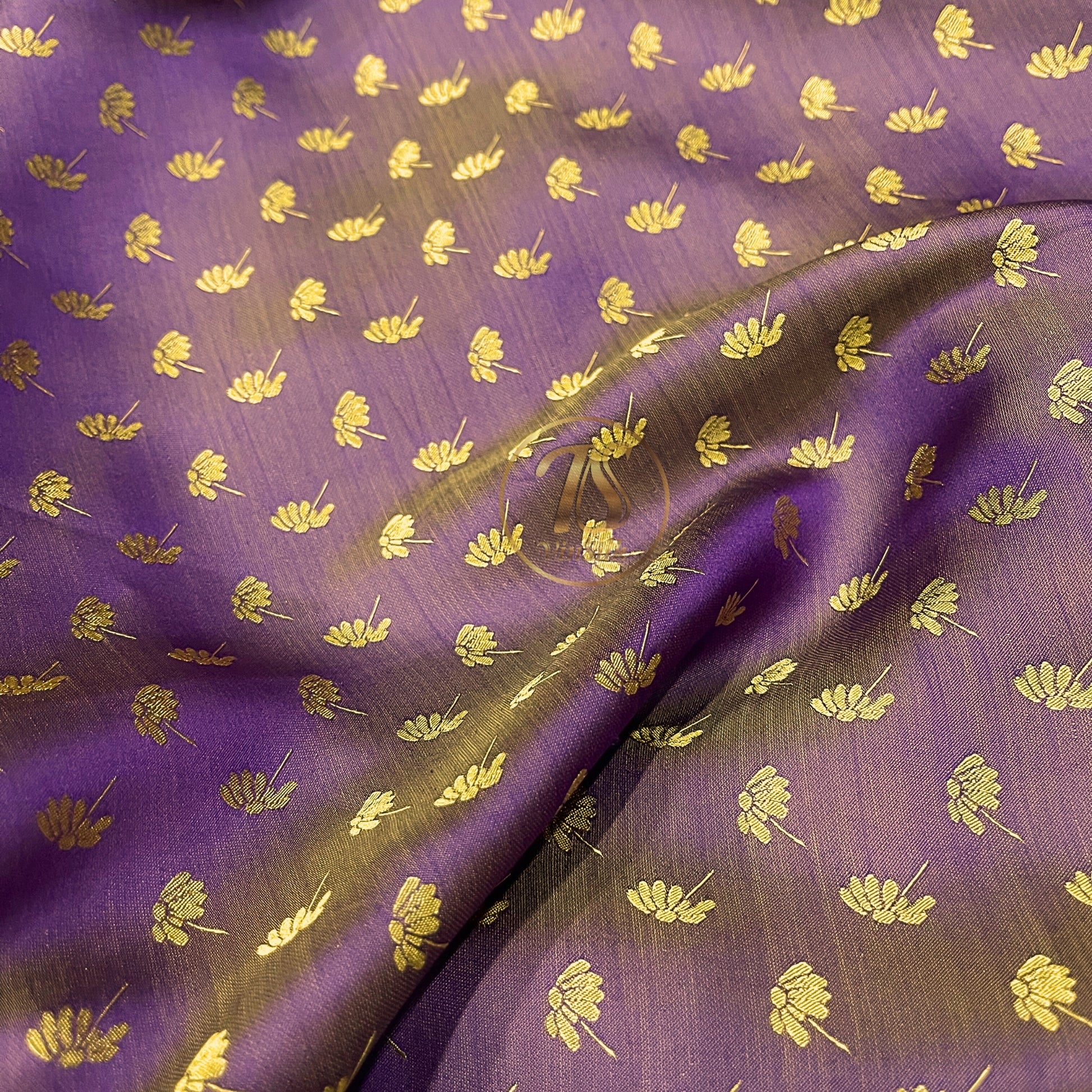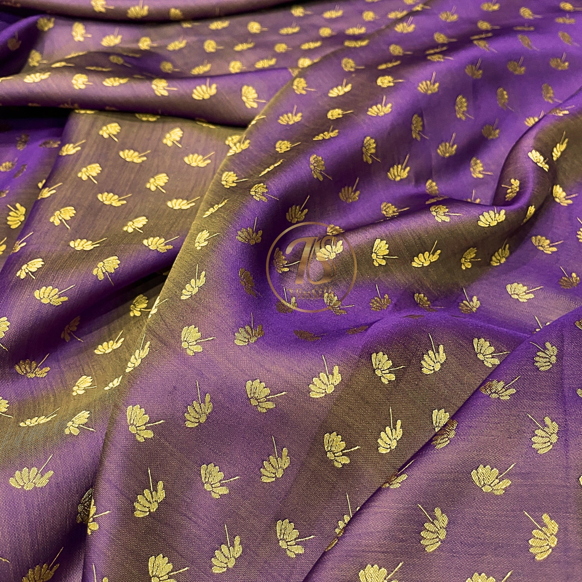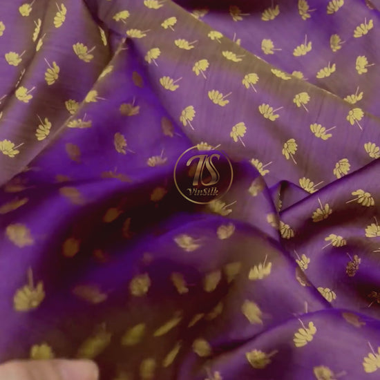 Purple Yellow fabric with mulberry dandelion pattern, Pure mulberry silk, Handmade fabric, Organic fiber
