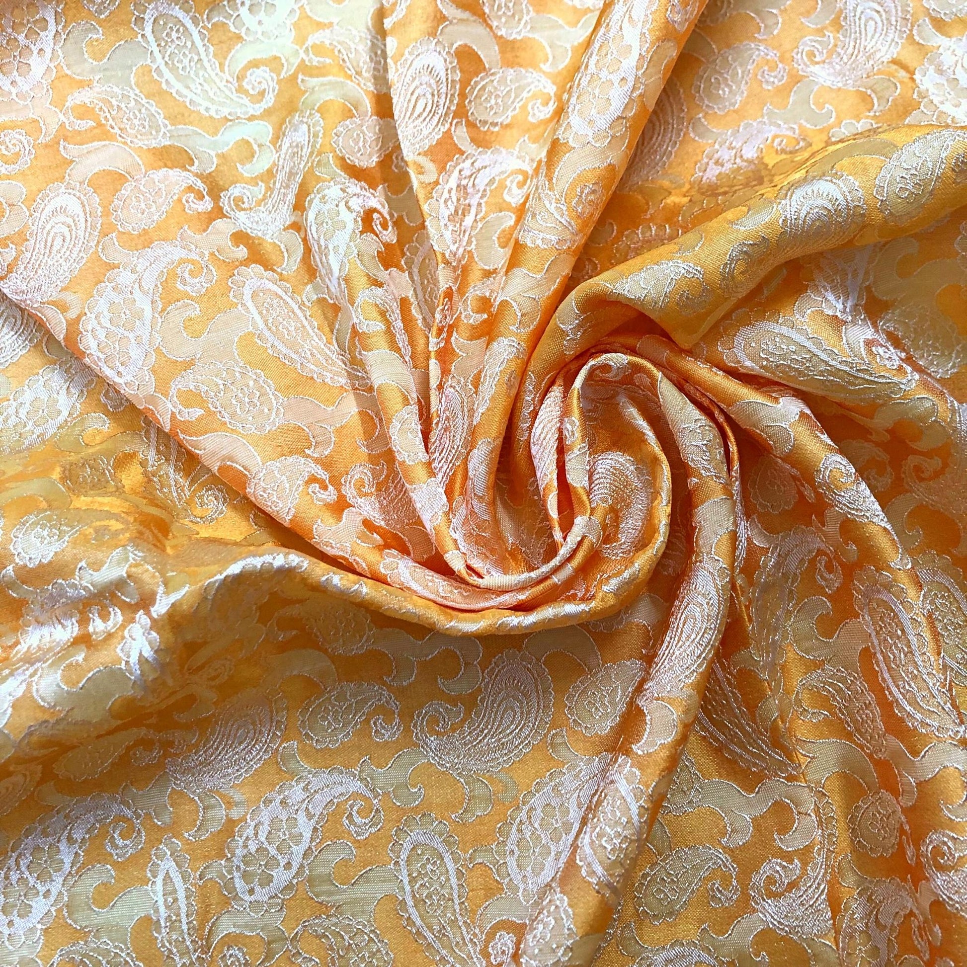 Yellow fabric with mulberry peacock tails pattern, Pure mulberry silk, Handmade fabric, Organic fiber